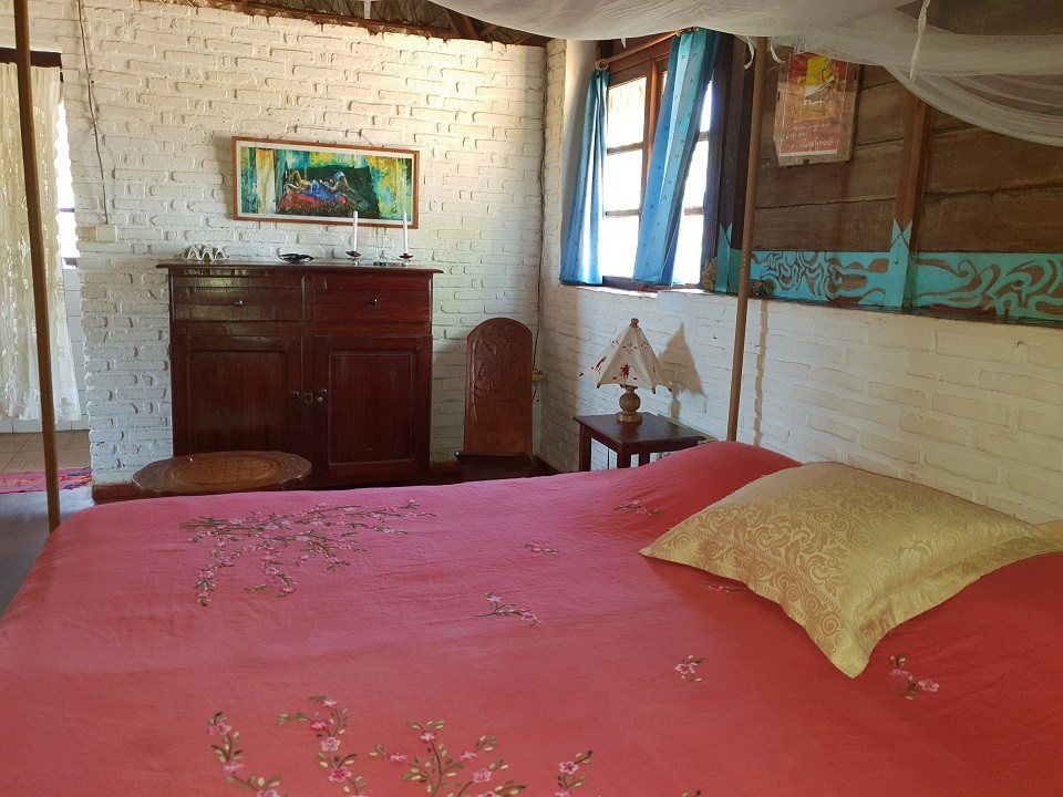 Voici notre grand bungalow familial avec vue sur mer. Construit avec des matériaux locaux, le bungalow se fond bien dans la nature qui l’entoure.