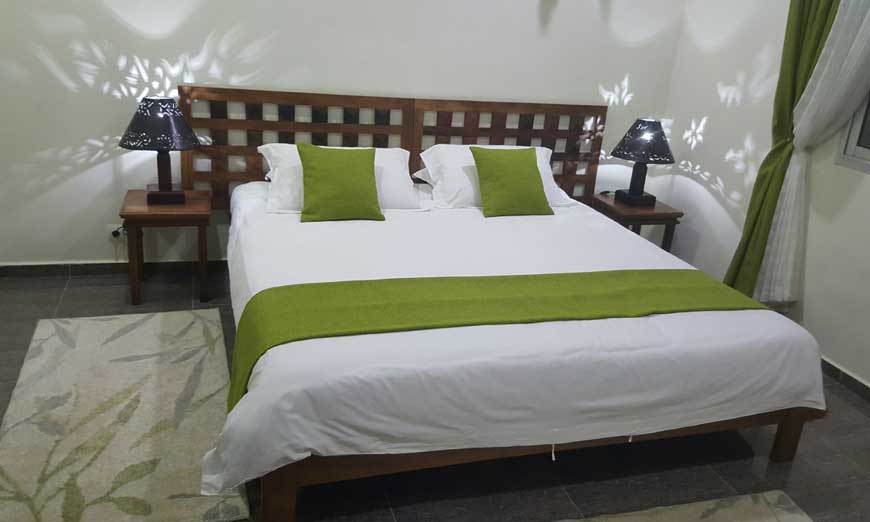 Les Chambres double standard sont situés à côté de la piscine. Elles comprennent un grand lit de deux places standard 200/180, pour 2 personnes, avec sanitaire privatif, et sont à 188700 Ar/nuitée( environ 51€ ), y compris le petit déjeuner et vignette touristique.